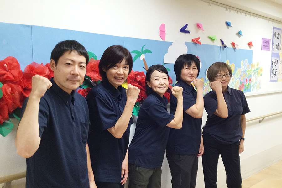 入浴・食事・機能訓練・多彩なレク、どの場面でも皆様に笑顔を。